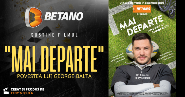 BETANO, operator european de top al industriei de pariuri sportive & cazinou online, susține filmul „Mai Departe”, creat și produs de Tedy Necula, care spune povestea uimitoare a vieții jucătorului de rugby George Baltă. Filmul intră în cinematografe pe 27 octombrie și prezintă călătoria incredibilă a jucătorului, care, după un accident petrecut în timpul unui antrenament, și-a reconstruit viața și a devenit un model viu al generației noastre.