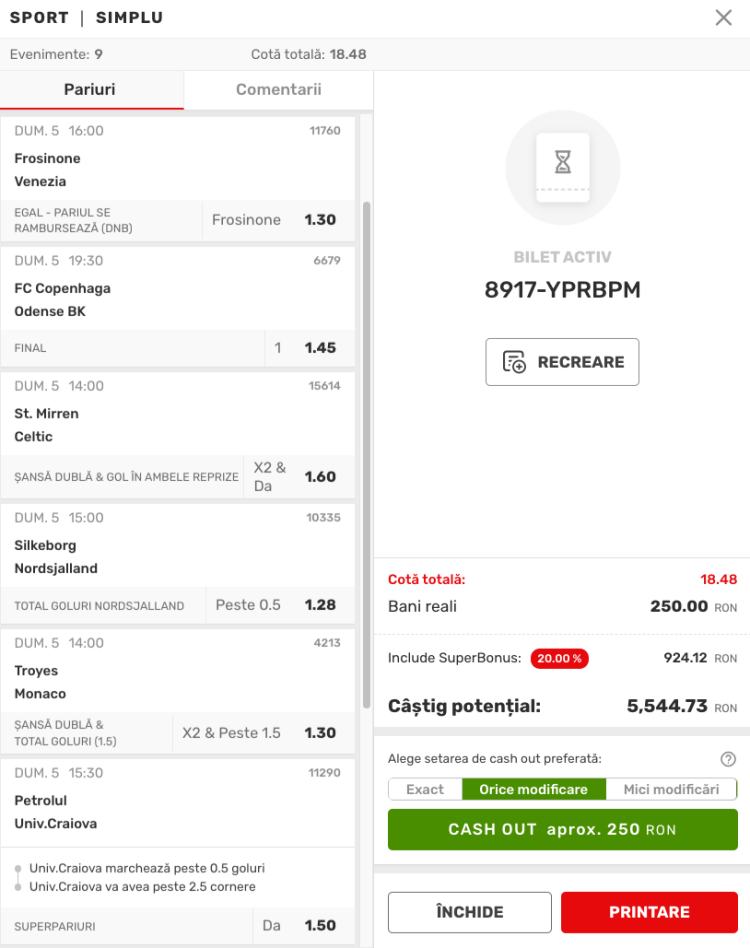 ⚠ BETTING TIP: pentru mai multe șanse de câștig, vă recomand să jucați separat și să "spargeți" biletul în pariuri mai mici formate din câte 2, 3 sau 4 selecții, după cum preferați, în funcție de ce risk-profile aveți!