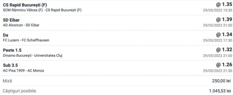 - Dinamo Bucuresti vs Universitatea Cluj - Peste 1.5 goluri (1.32)
