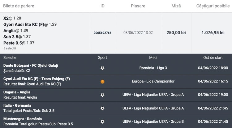 Cotele acestui bilet sunt luate din oferta BETANO!
