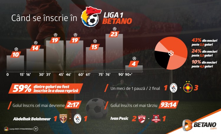 Când se înscrie în Liga 1 Betano? Ultimul sfert de oră, cel mai spectaculos!