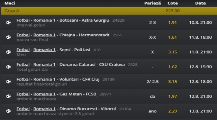 1. Botosani vs Astra - 2 sau 3 goluri in meci @1.91