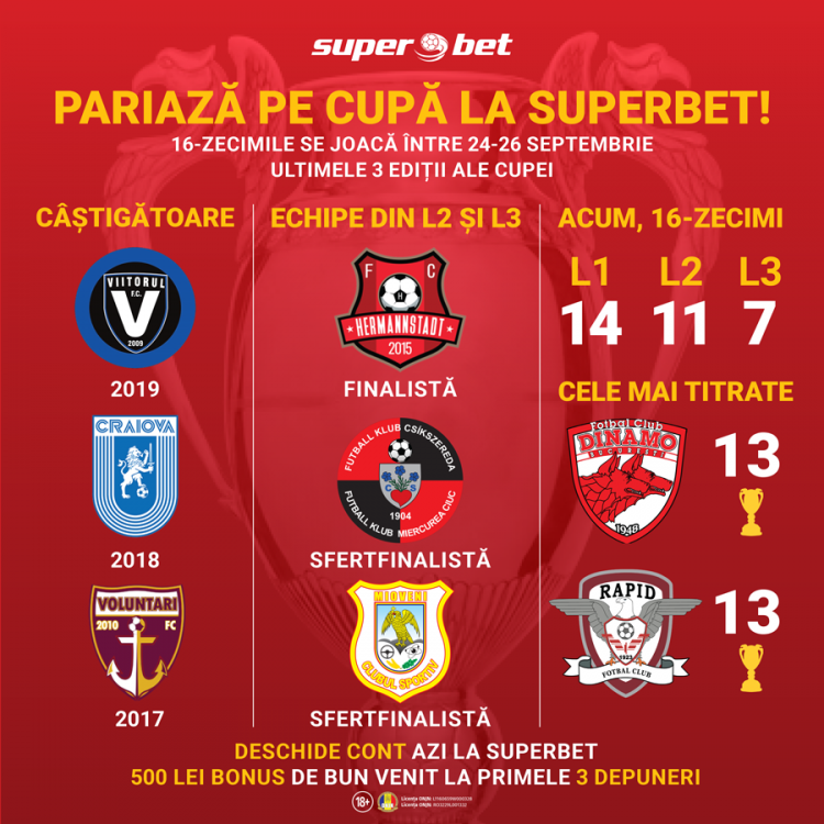 CUPA României a ajuns la faza șaisprezecimilor în ediția 2019-2020, iar pentru următoarele 3 zile vom fi cu ochii ațintiți spre meciurile, dar și spre cotele disponibile în ofertele caselor de pariuri.