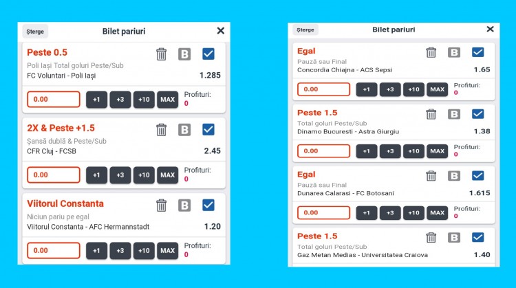 - 18:00 Voluntari-Iasi (Merg gol marcat Iasi pentru ca intalneste cea mai slaba echipa din campionat)