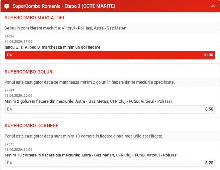 Cota care mi-a atras atenția este cea oferită pentru Denis Alibec și Gabi Iancu să înscrie fiecare minim un gol în meciurile pe care echipele la care evoluează le vor disputa împotriva lui Gaz Metan, respectiv Poli Iași. Cei doi împart prima poziție a clasamentului golgetterilor momentan, cu Florinel Coman, toți 3 având deja 11 reușite.