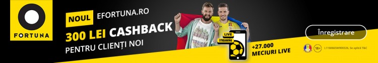 La FORTUNA, ai primul pariu asigurat în limita a 300 de lei, FĂRĂ RULAJ! Este cel mai tare bonus de tip CASHBACK disponibil în România! Primul tău pariu poate fi pe absolut orice, la ce cotă vrei tu, iar dacă îl pierzi, ai banii înapoi în cont, fără absolut nicio condiție de rulaj!