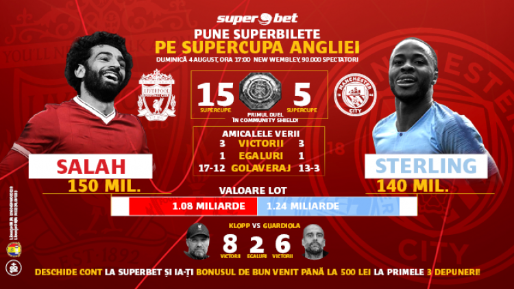 Sezonul oficial 2019-2020 începe în Anglia cu SuperDuelul dintre Campioana Manchester City și câștigătoarea Ligii Campionilor, Liverpool! Se anunță un SuperMeci în care Guardiola și Klopp vor da totul pentru victorie. Doi antrenori orgolioși care au purtat sezonul trecut o luptă spectaculoasă pentru titlul din Premier League. Cine se va impune duminică și va ridica trofeul Community Shield?