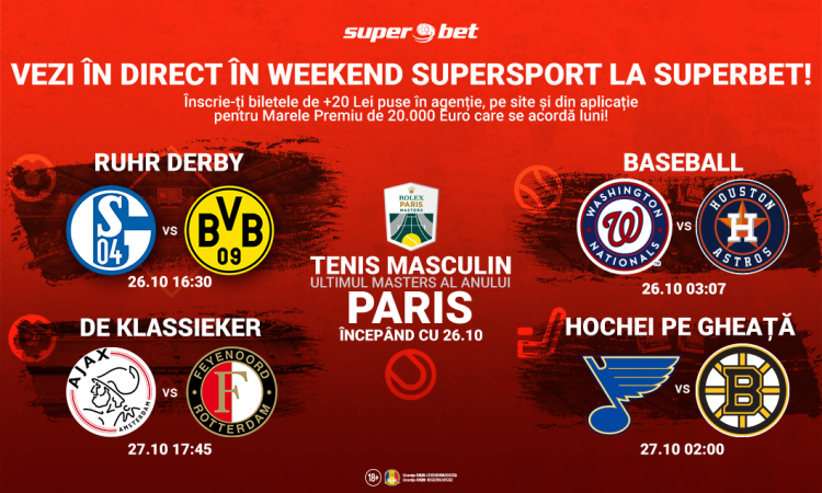 Începând cu Duminică 26.10, Streaming la Superbet.ro și pe aplicația Superbet