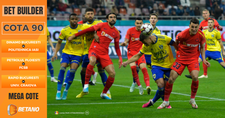 Finalul de săptămână aduce meciuri de neratat în prima ligă de fotbal a României. Dinamo caută primul succes după o secetă de opt etape, în timp ce Petrolul vrea revanșa în fața liderului FCSB pentru cele două înfrângeri din sezonul precedent. Rapid n-a câștigat pe teren propriu în fața Universității Craiova de la revenirea în primul eșalon, ultimele trei confruntări având o medie de 4.3 goluri marcate pe meci. Pe Betano, cu Bet Builder activat, toate pariurile preferate pot fi plasate pe același bilet, dintr-un meci sau din mai multe meciuri, pentru o singură cotă. De acum, în Bet Builder, poți miza pentru o cotă generoasă și că jucătorul favorit va marca un hat-trick.