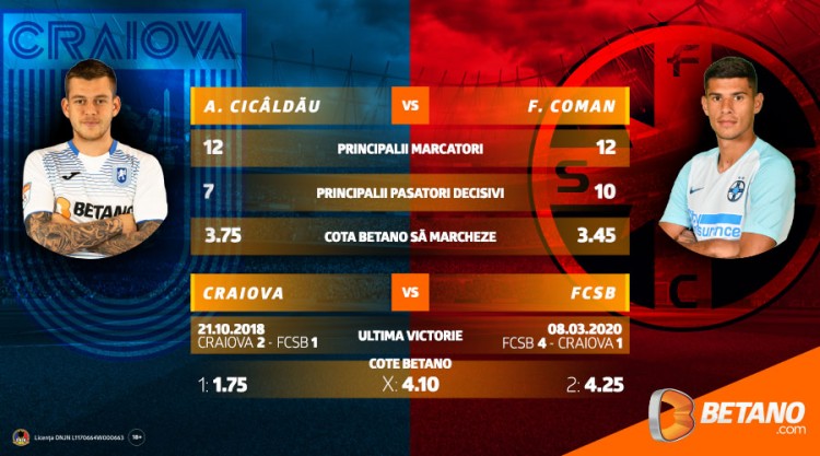 Crește adrenalina, la fel și cotele de pe Betano! Atmosfera din Bănie fierbe în așteptarea derby-ului cu FCSB! Craiova este lider pentru prima dată de când a promovat, în urmă cu 6 ani, iar o victorie contra roș-albaștrilor i-ar duce pe “juveți” mai aproape de un titlu așteptat de 30 de ani de toată suflarea suporterilor olteni!