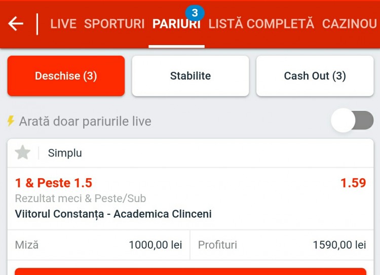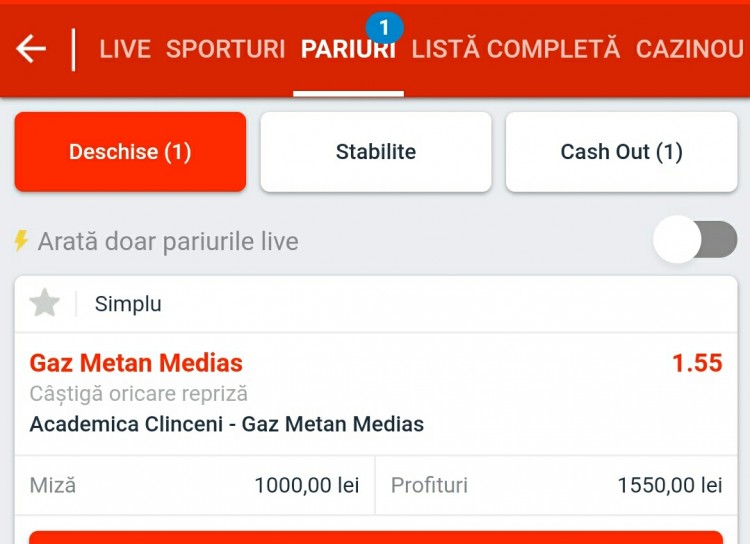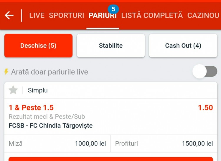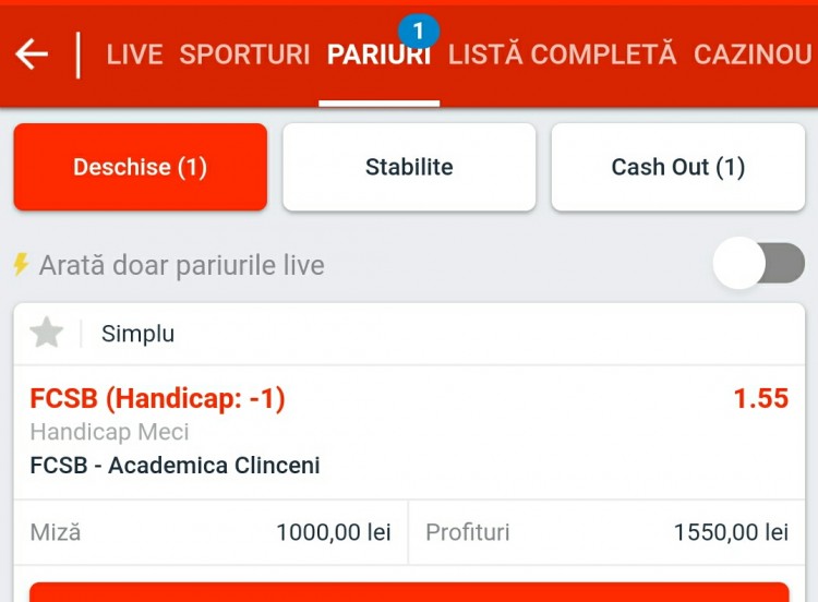 Cash-out-ul si Streaming-ul LIVE - Atunci cand jucam la pariuri esential e sa avem tot ce ne trebuie la indemana. La Betano iti poti urmari la o calitate foarte buna partida pe care ai mizat deoarece aceasta casa de pariuri ofera zilnic pariorului, sute de transmisii live. Deasemenea, Cash-Out-ul e destul de important pentru multi utilizatori deoarece iti poti salva o anumita suma de bani in cazul in care echipa pe care ai pariat nu se descurca tocmai bine sau te poti opri la un anumit profit in cazul in care ai pariat spre exemplu pe cel putin 3 goluri intr-un meci, iar in primele 20 de minute s-au marcat deja 2 goluri.