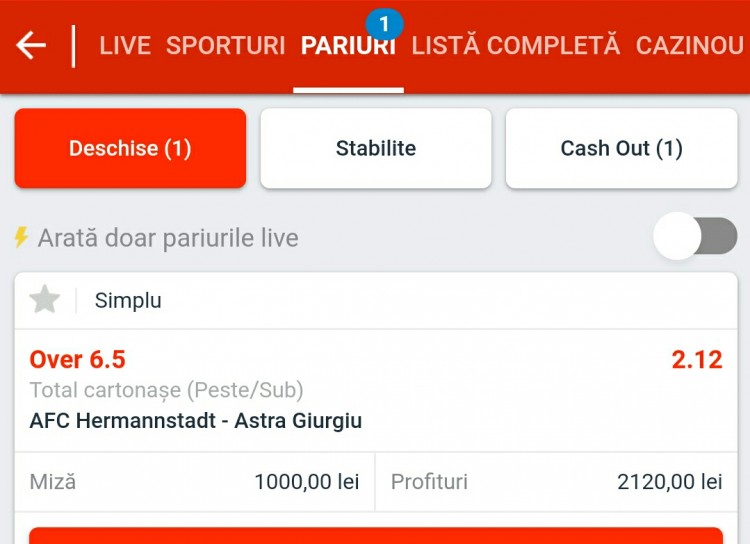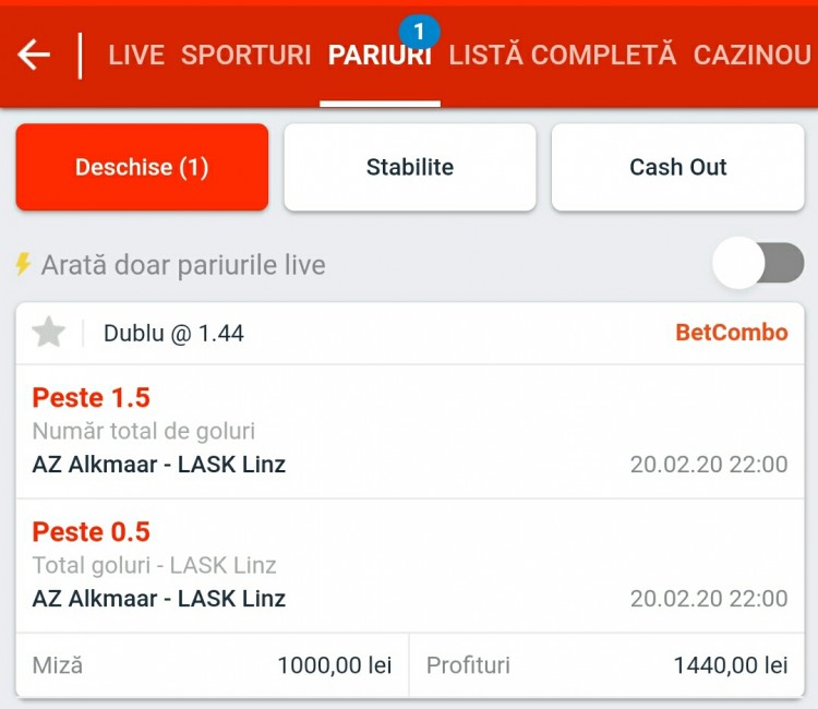 Oferta diversificata - Atunci cand vreau sa pariez un meci caut mereu cea mai bogata oferta pentru a avea de unde sa-mi aleg cea mai de incredere selectie. Oferta pentru cele mai importante sporturi contine cele mai complexe linii de Over, Under si Handicap de pe piata, insa si enorm de multe variante exclusive cum ar fi: ”Echipa X marcheaza pana in minutul Y”, ”Pauza/Final Sansa Dubla”, ”Metoda marcarii golului X” sau ”Scor corect oricand in meci”. Deasemenea, la meciurile din campionatele importante si nu numai avem linii complexe la ”Cartonase” si ”Cornere” insa putem paria si pe statistici cum ar fi: ”Faulturi”, ”Offside-uri”, ”Aruncari de la margine”, ”Suturi pe poarta”, ”Lovituri de la poarta” si mai nou ”Vizionari VAR”.