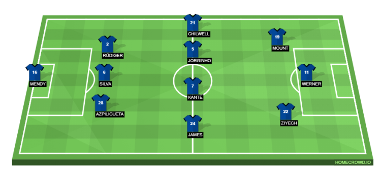 Chelsea Londra (3-4-2-1): Mendy; Azpilicueta, Silva, Rudiger; James, Kante, Jorginho, Chilwell; Ziyech, Mount; Werner