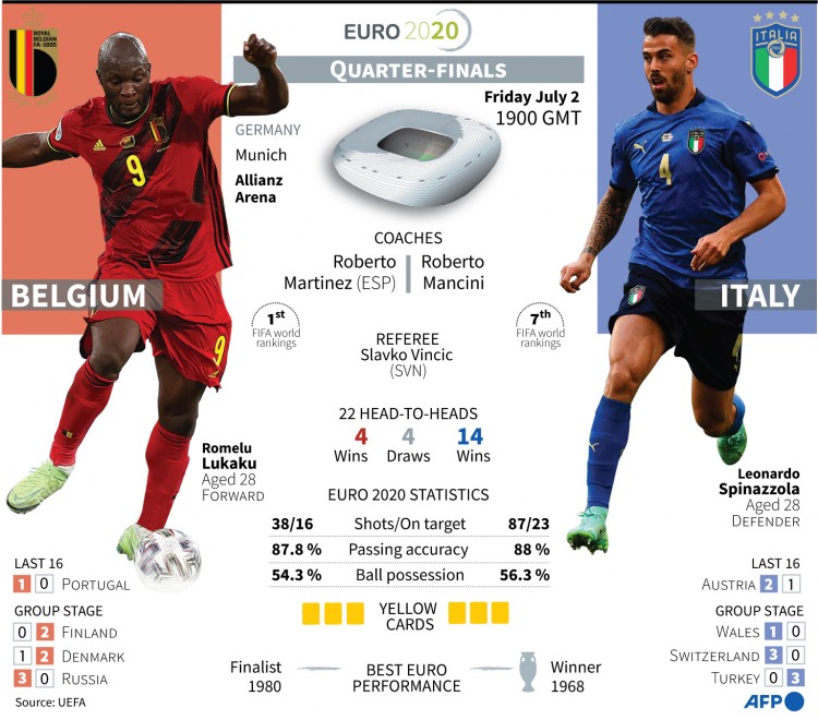 Selectioner Belgia – Roberto Martinez - "Italia va ataca inca din prima secunda, va fi o echipa foarte bine structurata si dinamica. Fiecare jucator al ei isi cunoaste sarcinile. Meciul cu Portugalia a fost unul care se putea juca mult mai tarziu in competitie. De obicei jucatorii nu au parte de meciuri atat de fizice si intense in aceasta faza a unui turneu final. Din fericire, am avut destul de zile sa ne recuperam”.