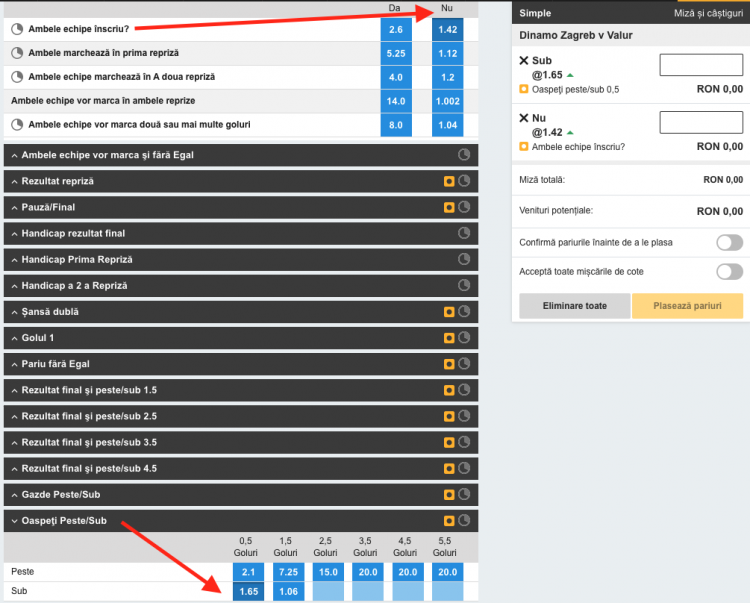 Pe Betfair Sportsbook, cota pentru sub 0,5 goluri marcate de Valur Reykjavik este 1.65, o eroare destul de gravă din partea traderilor, având în vedere faptul că selecția NU pentru Ambele Marchează este cotată la 1.42. Ar trebui să profităm, este un VALUE BET!