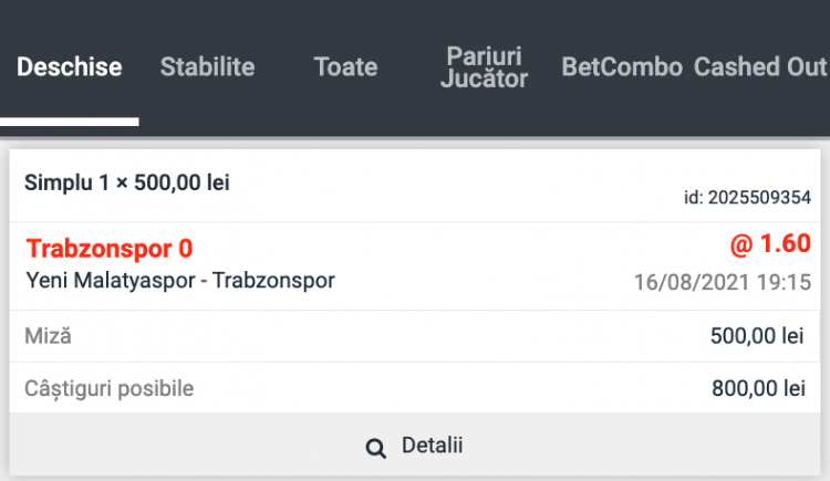 Investițiile masive din această vară îi obligă pe cei de la Trabzonspor să lupte pentru titlu. Încep sezonul împotriva victimei favorite, așa că este de așteptat o victorie lejeră. Pe Betano, cota pentru Pariu Fără Egal Trabzonspor (DNB) este 1.60 și-l voi juca la prima treaptă din proiectul PIRAMIDA!