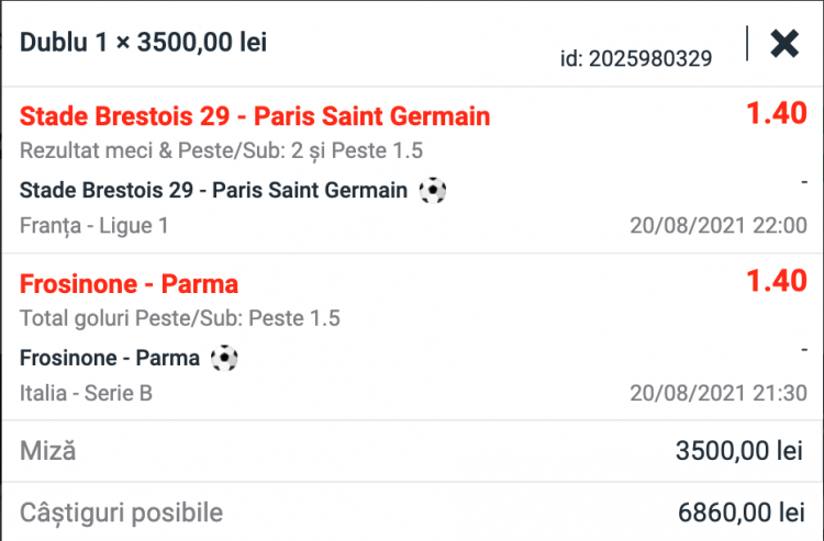 Biletul Zilei format din 2 meciuri la cota 1.96