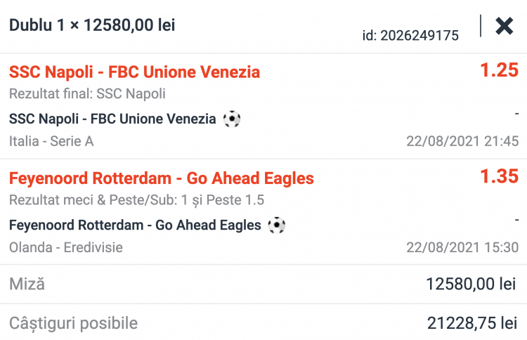 Biletul Zilei format din 2 meciuri la cota 1.69