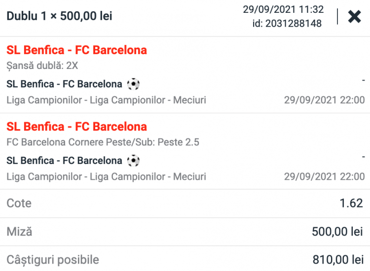 Ponturi Pariuri Fotbal Benfica vs Barcelona