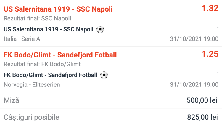 Cele două meciuri combinate pe același bilet nu dau un pariu la cotă finală grozavă, dar se încadrează în cerințele pentru prima treaptă din foarte îndrăgitul proiect PIRAMIDA