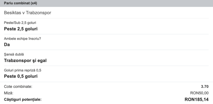 Ponturi Pariuri Fotbal Besiktas vs Trabzonspor