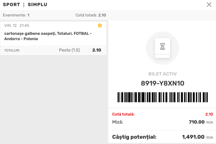 Așadar, cota 2.10 disponibilă în SUPERBET în secțiunea de SPECIALE pentru Peste 1.5 cartonașe galbene încasate de echipa oaspete mi se pare una chiar bună, care merită din plin jucată, mai ales dacă luăm în calcul argumentele pe care le-am enumerat.