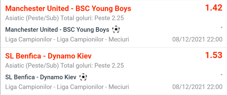 Pe Old Trafford, Manchester United primeste vizita celor de la Young Boys, echipa care spera la un loc de UEFA Europa League. Manchester United e calificata in optimile Ligii Campionilor, insa Ronaldo cu siguranta isi va dori sa mai doboare ceva recorduri. Imi e greu sa cred ca se va juca inchis si imi e greu sa cred ca elvetienii vor reusi sa invinga si in acest retur. In meciul din Elvetia, Young Boys s-a impus cu 2-1 dupa un gol marcat de Seibatcheu in minutul 90+5. Rangnick a debutat cu un succes la ”diavoli” in week-end, 1-0 contra celor de la Crystal Palace. Diferenta dintre United si Young Boys e destul de mare, insa pe alocuri elvetienii pot surprinde defensiva uneori nesigura a englezilor. Ma astept si aici la multe reusite, avand in vedere ca ambele echipe au medii de peste 3 la capitolul goluri/meci, in acest sezon european.