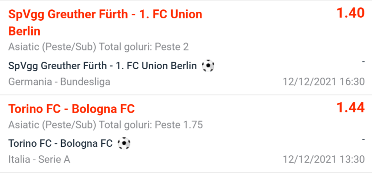 Ponturi Pariuri Fotbal SpVgg Greuther Fürth vs 1. FC Union Berlin + Torino FC vs Bologna FC