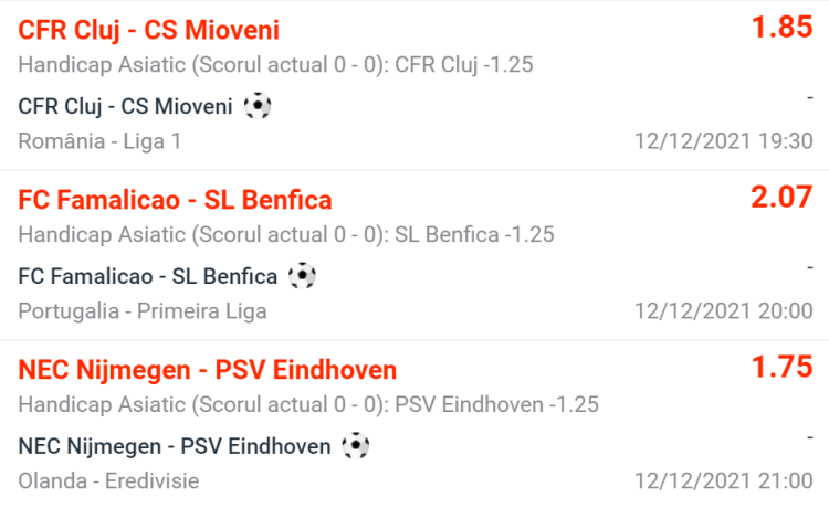 Ponturi Pariuri Fotbal CFR Cluj vs CS Mioveni + FC Famalicao vs SL Benfica + NEC Nijmegen vs PSV Eindhoven