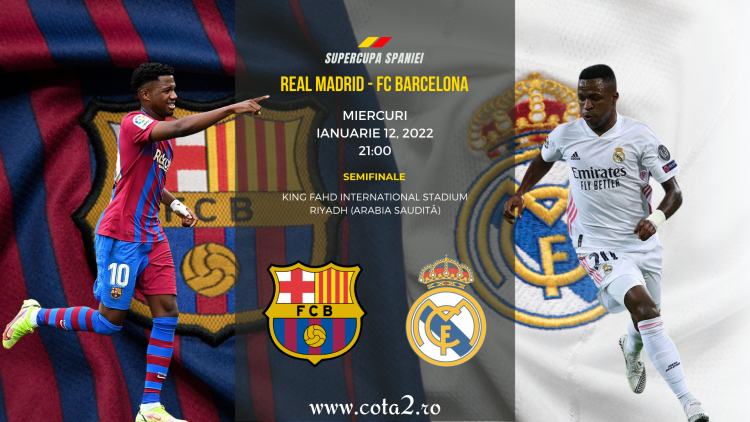 De la ora 21:00, pe ”King Fahd International Stadium” din Riyadh (Arabia Saudită), Barcelona si Real Madrid se vor intalni in prima semifinala din SuperCupa Spaniei, jucata si in acest an in sistem ”Final Four”.
