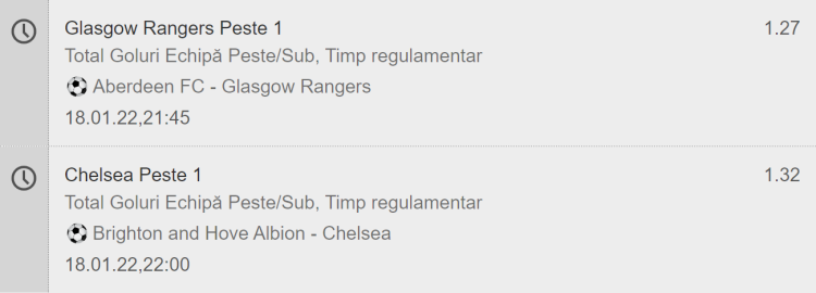 Acest bilet este plasat la MaxBet! Pariurile sunt: Chelsea marcheaza peste 1 gol asiatic si Rangers marcheaza peste un gol asiatic. Asadar, avem nevoie de minim doua goluri ale acestor formatii, insa daca vor marca fix un gol, primim cota 1, implicit miza inapoi.