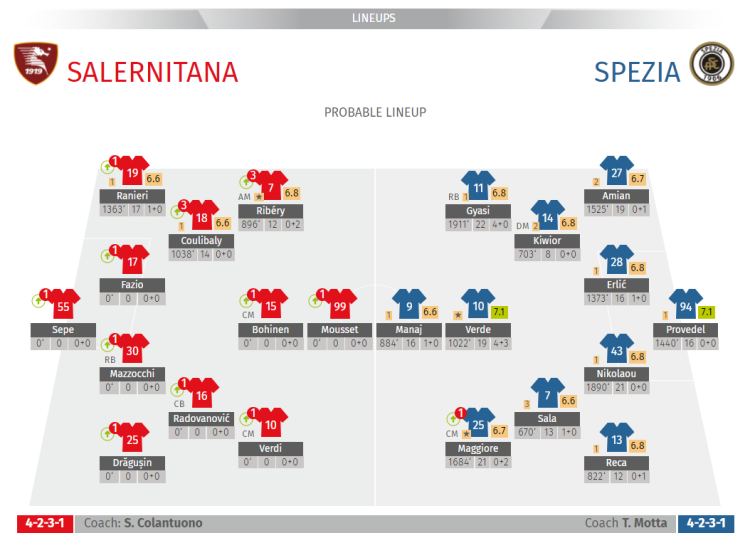 De la ora 21:45, pe Stadio Arechi, Salernitana primeste vizita celor de la Spezia in ultima partida a rundei cu numarul 24 din Serie A.