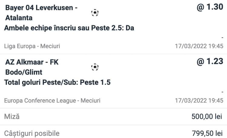 Biletul Zilei format din 2 meciuri la cota 1.60