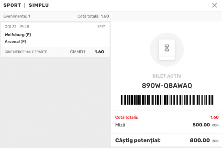 Pe Superbet, casa de pariuri online numărul 1 din România, cota pentru Wolfsburg merge mai departe este @1.60.