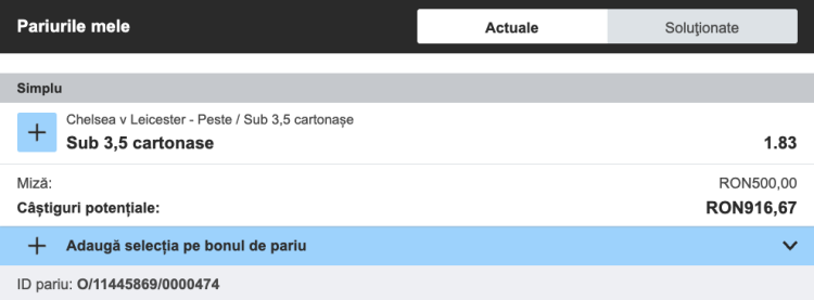 Pe Betfair Sportsbook, cota pentru sub 3.5 cartonașe în Chelsea - Leicester este @1.83.