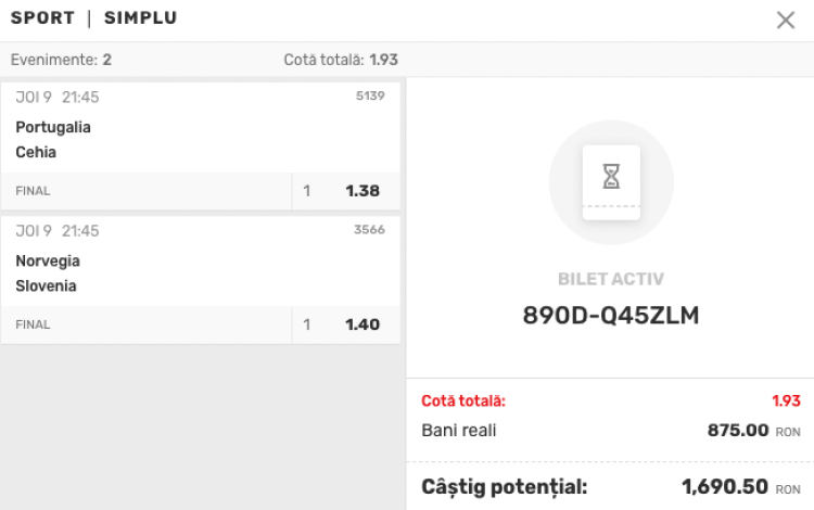 După cum știți foarte bine, am în desfășurare unul dintre cele mai profitabile proiecte bazate pe reinvestirea câștigului în sistem ALL-IN din România, cu rezultate excelente până acum, iar acest bilet îl voi folosi la pasul 2/5, cu tot câștigul acumulat după înverzirea pariului 1/5.