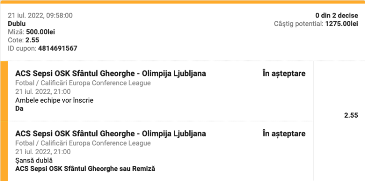 Ponturi Pariuri Fotbal Sepsi OSK vs Olimpia Ljubljana