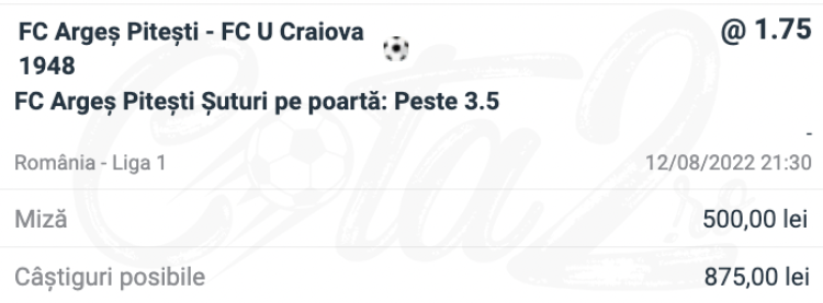 Pariul ales azi din campionatul României se bazează pe o nouă evoluție curajoasă a echipei gazdă. Chiar dacă FCU Craiova a arătat bine în startul de mandat al lui Marius Croitoru, ne așteptăm ca publicul să o împingă în atac pe FC Argeș și piteștenii să producă multe acțiuni la poarta oltenilor.
