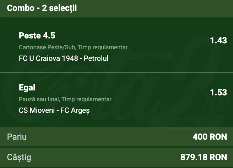 Biletul Zilei format din 2 meciuri la cota 2.19