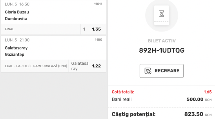 Biletul Zilei format din 2 meciuri la cota 1.65