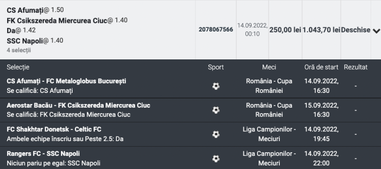 Biletul Zilei format din 4 meciuri la cota 4.17