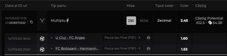 • și 9 dintre cele 17 partide ale lui FC Argeș au fost X la pauză