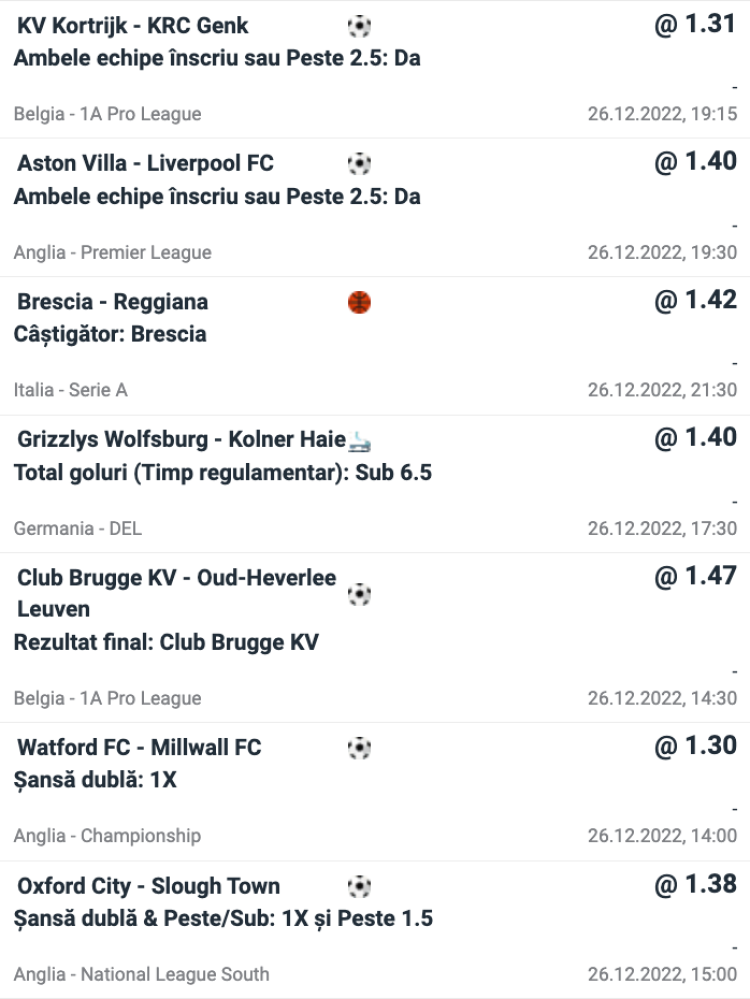 Prieteni, iată și varianta de Boxing Day pentru BILETUL GRUPULUI la o cotă de aproape 10!