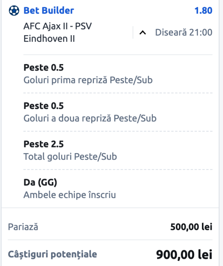 Ponturi Pariuri Fotbal Ajax Amsterdam II vs PSV Eindhoven II